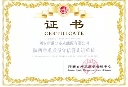 陕西省“质量诚信双满意单位”“重质量守信誉先进单位”